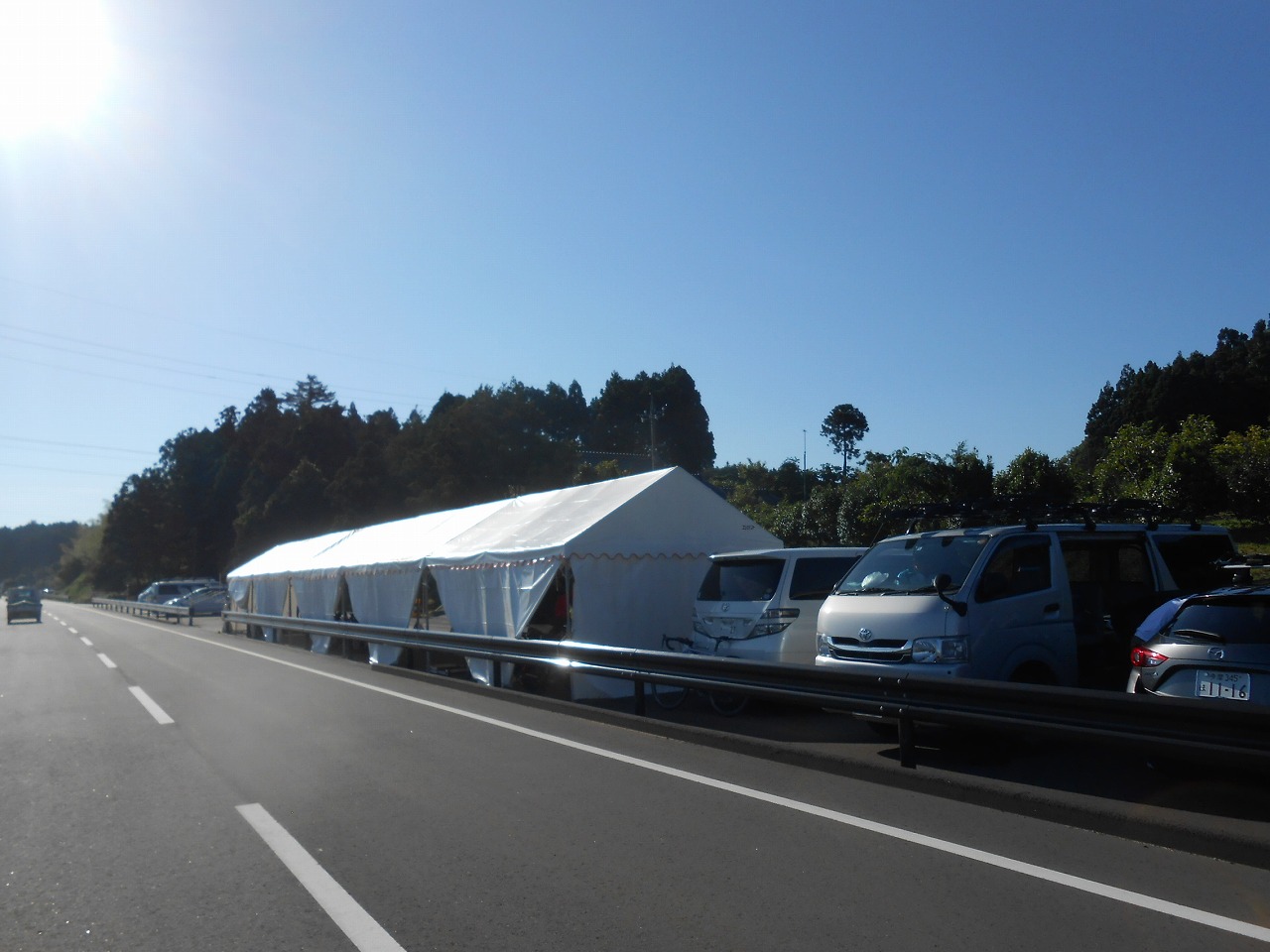 志賀町でイベントを設営します。志賀町で第22回全日本選手権個人タイム・トライアル・ロード・レース大会のテントを設営します。